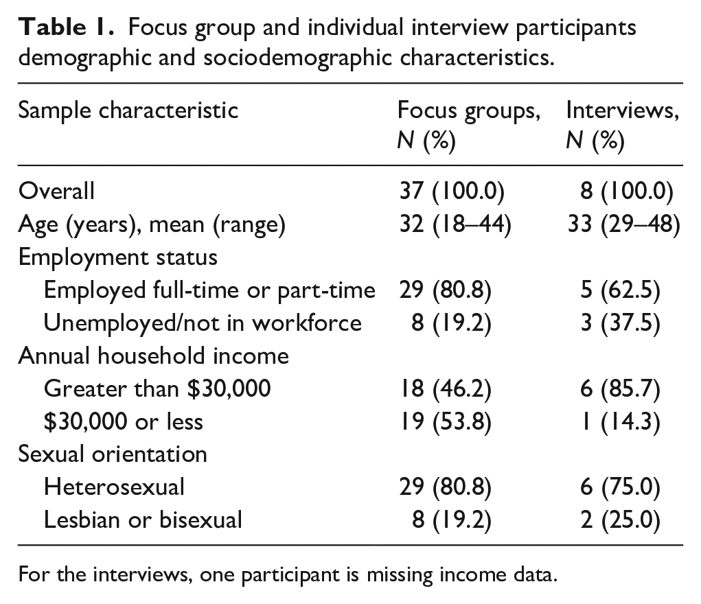 All interviews and focus groups were conducted by Black cisgender women public health researchers trained in qualitative research methods. After each session, the research team debriefed and wrote analytical memos. Interviews and FGDs were audio-recorded and transcribed verbatim by a HIPAA-compliant transcription company. All study procedures were approved by Institutional Review Boards at Brown University and Johns Hopkins Bloomberg School of Public Health.