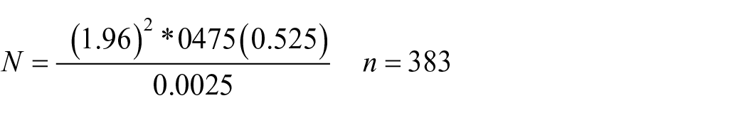 After adding a 10% nonresponse rate, the final minimum sample considered for the study was 305.