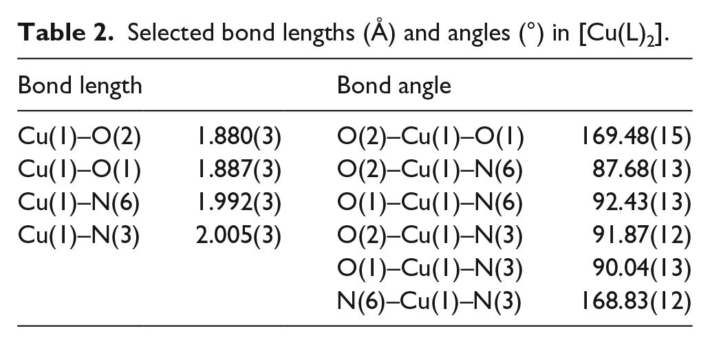 Selected bond lengths (Å) and angles (°) in [Cu(L)2].