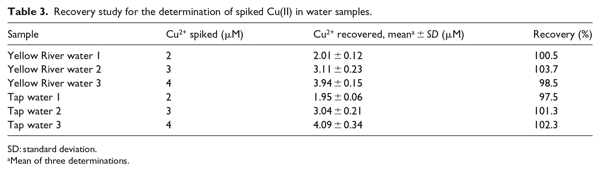 Recovery study for the determination of spiked Cu(II) in water samples.
