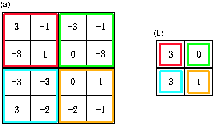 Max pooling. (a) 4 × 4 feature map. (b) Result of max pooling.