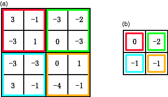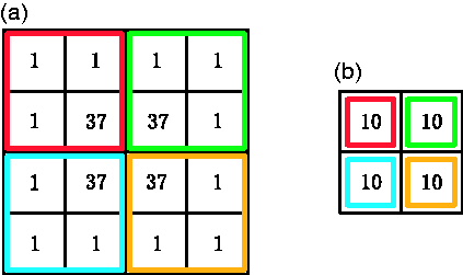 Average pooling. (a) 4 × 4 feature map. (b) Result of average pooling.