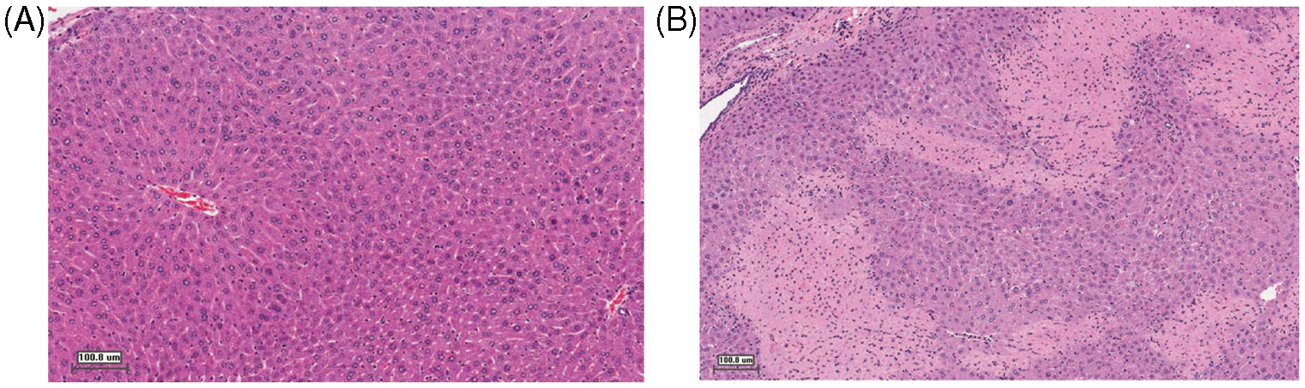 Plasma was stored at −80°C. Levels of alanine aminotransferase (ALT) were evaluated through a University of Michigan core facility using the Idexx Vet Test Analyzer (Model 8008; Westbrook, ME, USA). The Idexx Vet Test machine is a dry chemistry analyzer that uses a colorimetric optical system to quantify end-point and rate measurements of biochemical reactions.