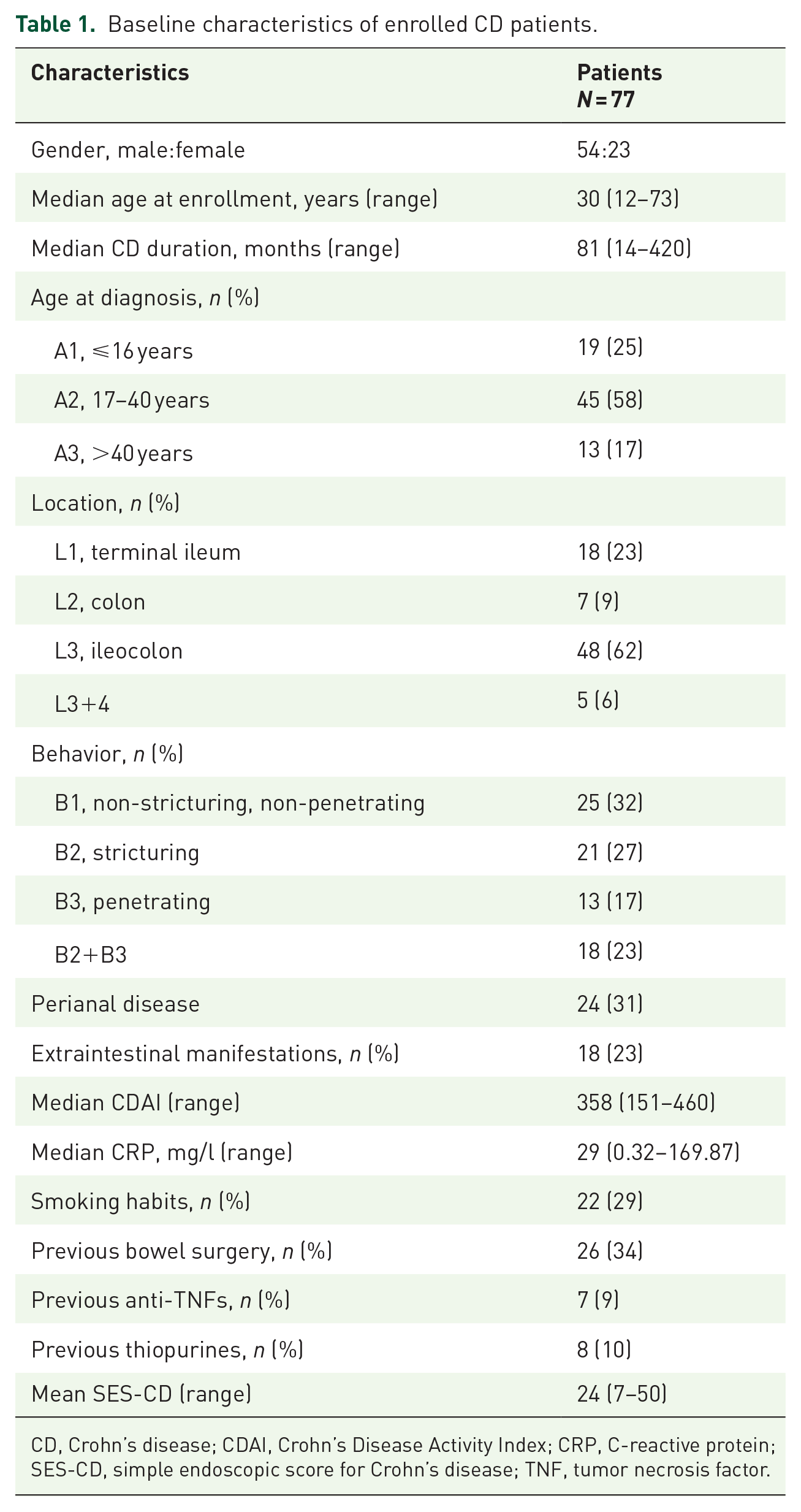 Baseline characteristics of enrolled CD patients.