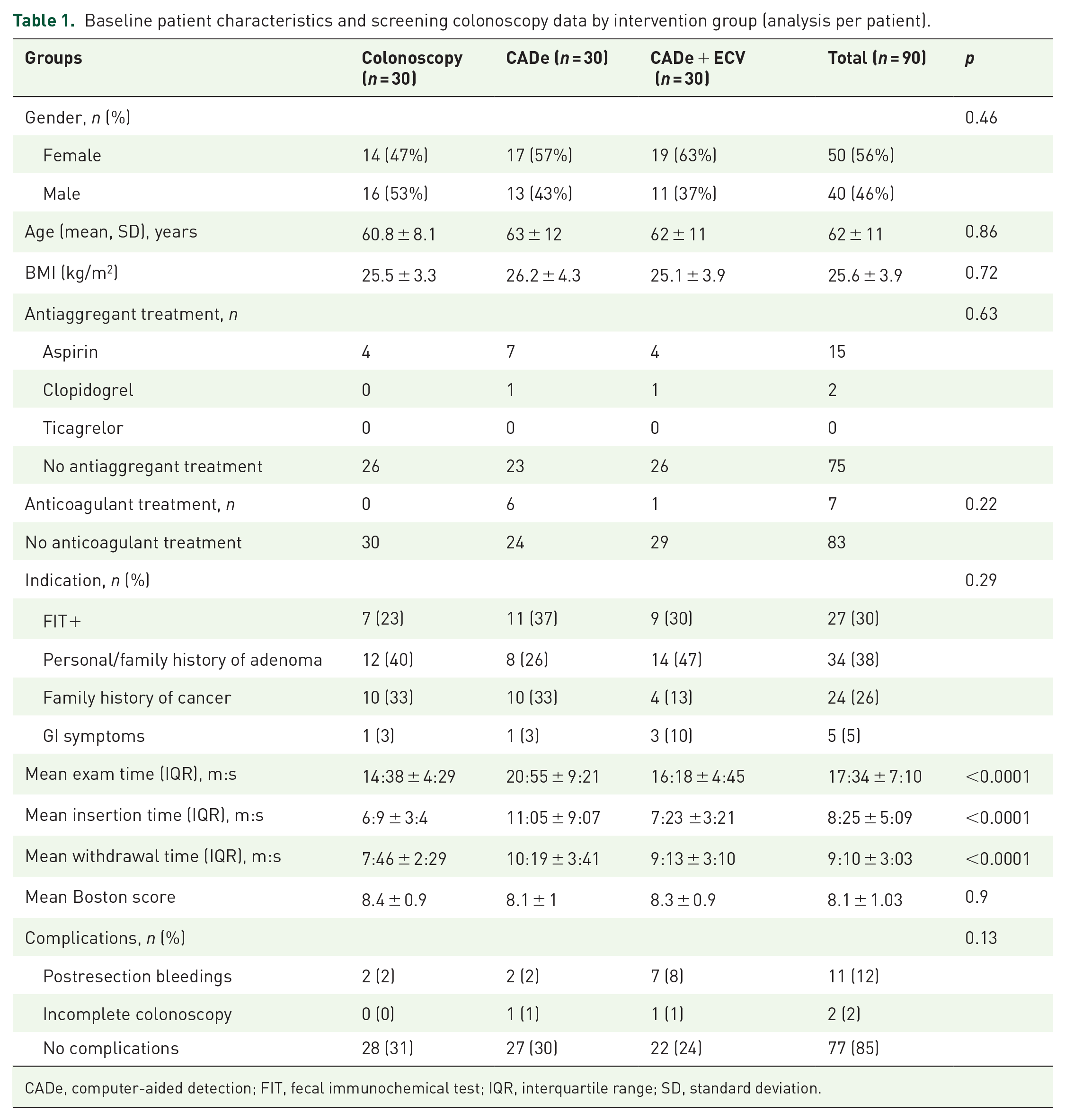 CADe, computer-aided detection; FIT, fecal immunochemical test; IQR, interquartile range; SD, standard deviation.