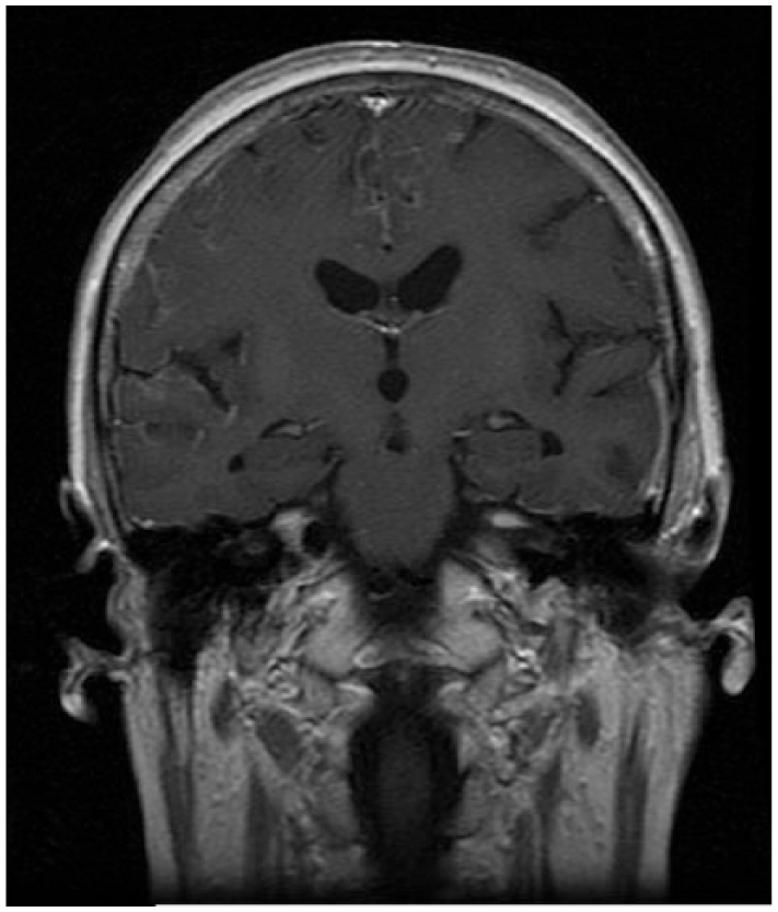 Linear or nodular enhancing lesions of the cranial nerves and spinal nerve roots (e.g. cauda equine), brain sulci and cerebellar foliae are the most common findings32,33 (Figures 1–3). NM lesions typically are small in size (<5 mm) and with complex geometry, thus a quantitative analysis with current MRI technology is difficult. 34 Other neuroimaging techniques (MRI spectroscopy, MRI perfusion, MRI diffusion and positron emission tomography) are not currently employed. Communicating hydrocephalus could be observed in 11–17% of patients, and CSF flow studies, including radioisotope cisternography, are useful in the case of suspected CSF blockage or altered intrathecal drug delivery.35,36