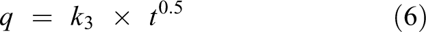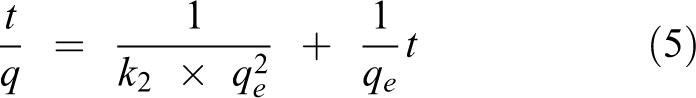 The kinetic rate equation for the quasi-first-order, quasi-second-order dynamic model and the intra-particle diffusion model is expressed as follows