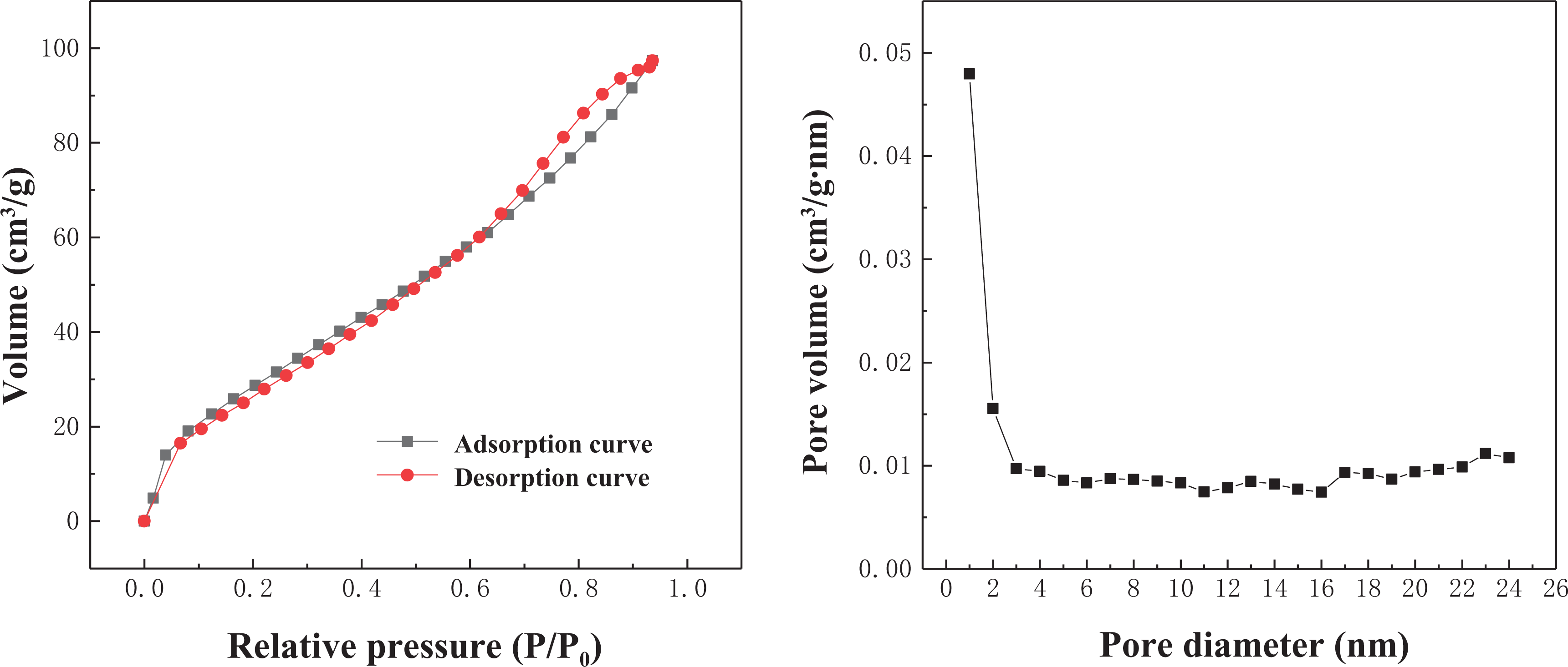 Adsorption/desorption curves and pore size distribution of nano-ceramic.