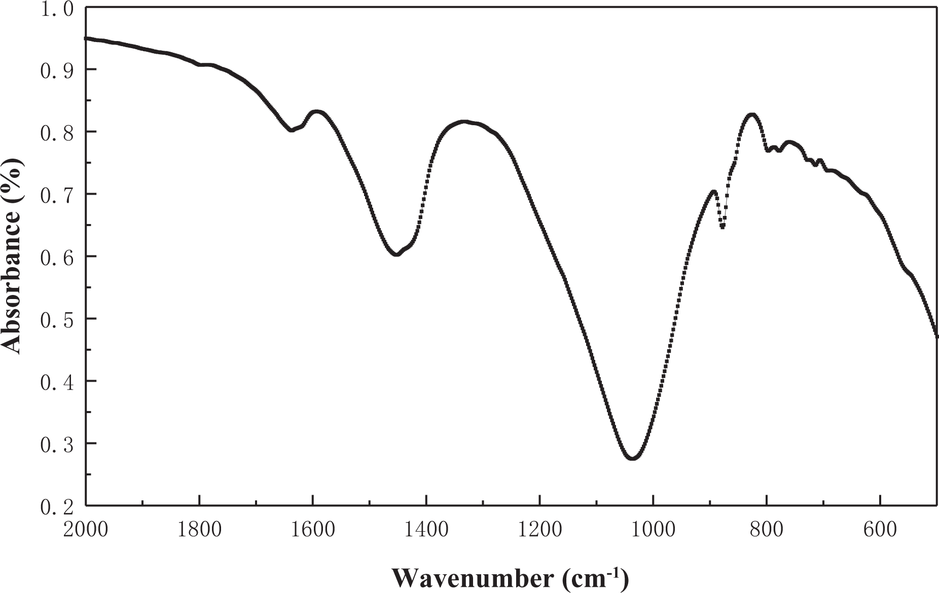 The type of functional group in the experimental sample was characterized by FTIR (VERTEX 70, Bruker, Germany). The sample was prepared by KBr tableting method, and the wavelength range tested was 400–4000cm−1.