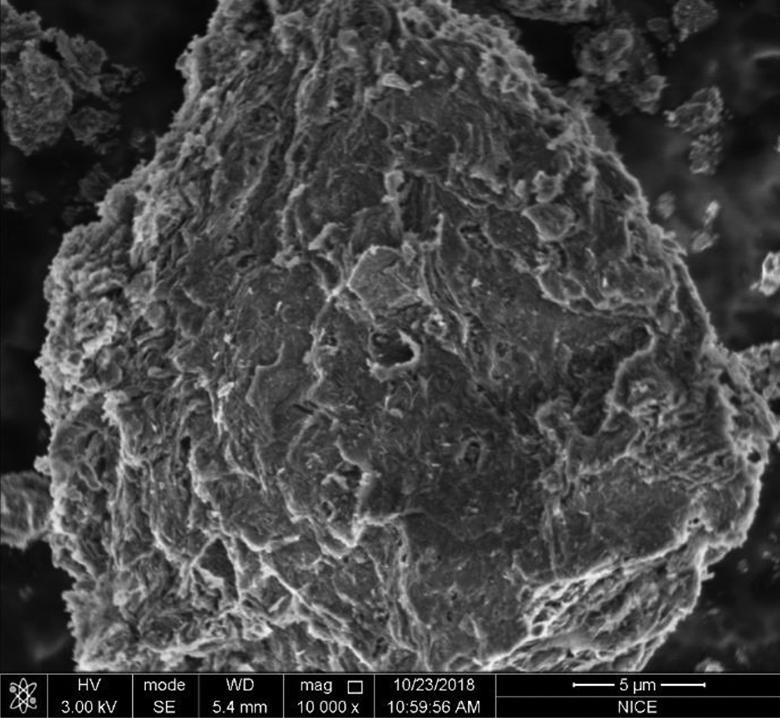 The microstructure of the adsorbent is generally considered to have influence on the adsorption process and mechanism. The SEM image of the nano-ceramic is shown in Figure 5, after magnifying 10,000 times, it can be found that the surface of the NC is a distinct layered structure with uniform surface and less dispersed particles.