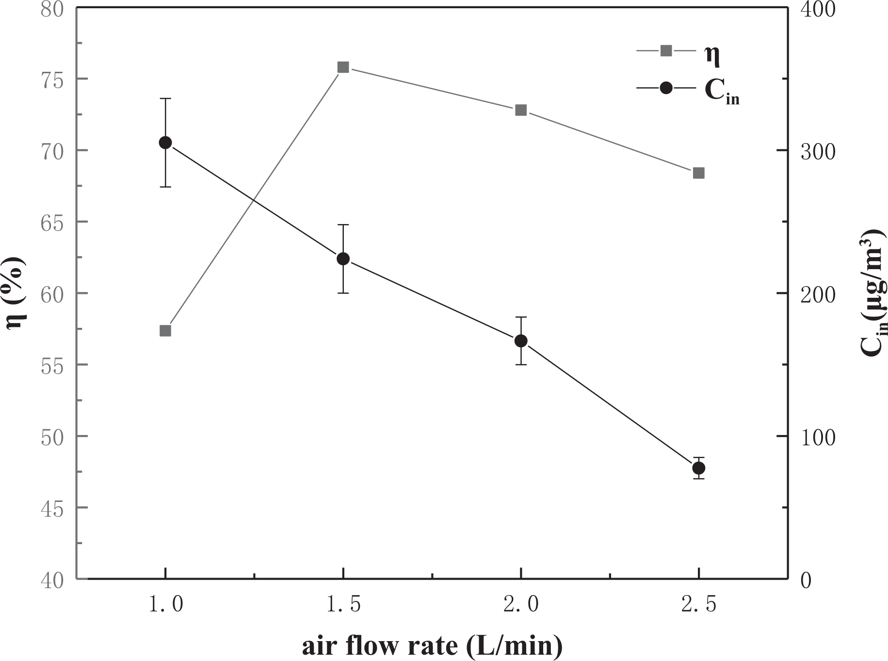 Changes in airflow cause changes in both Hg0 concentration and residence time. When the flow rate is small, the initial concentration
