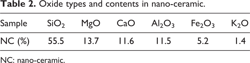The main oxide types and contents in NC measured by XRF are given in Table 2.
