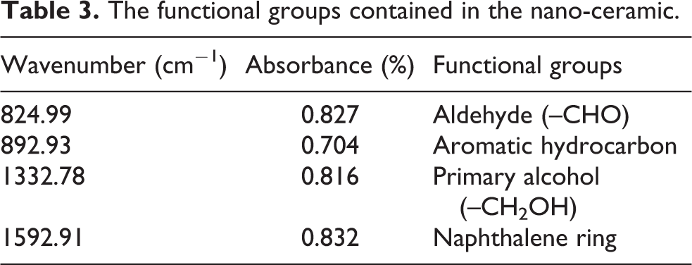 The FTIR spectra of the nano-ceramic. FTIR: fourier transform infra-red.