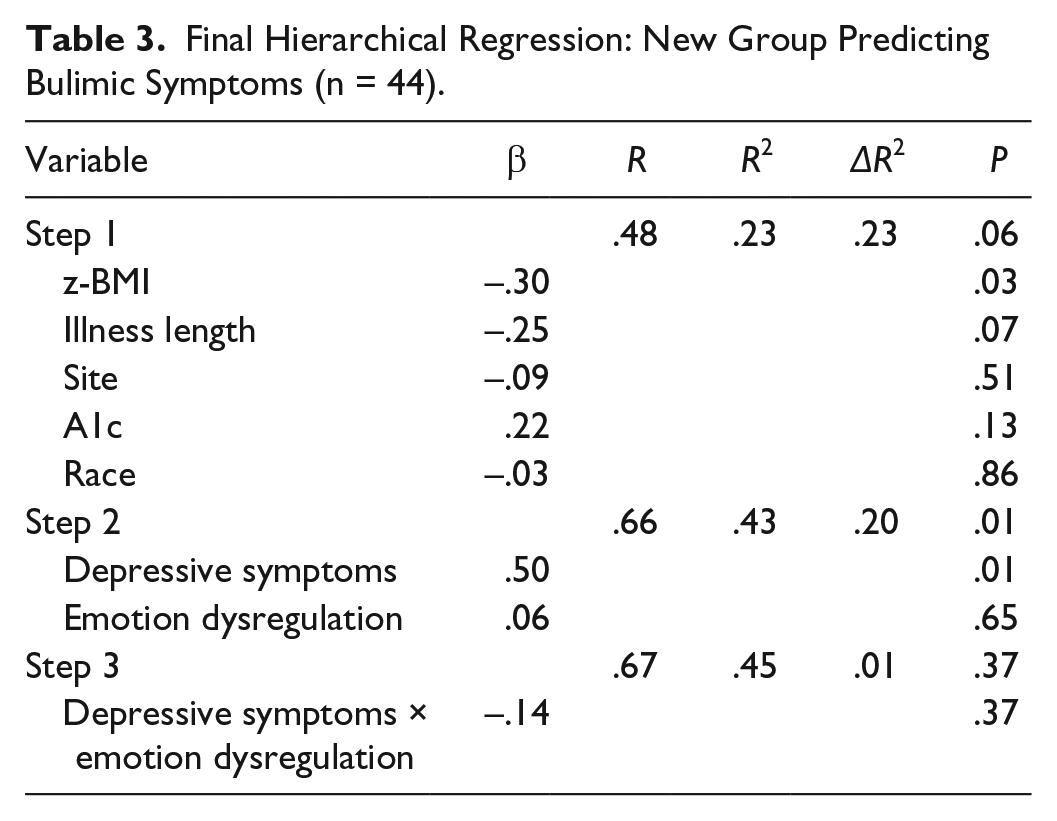 Final Hierarchical Regression: New Group Predicting Bulimic Symptoms (n = 44).