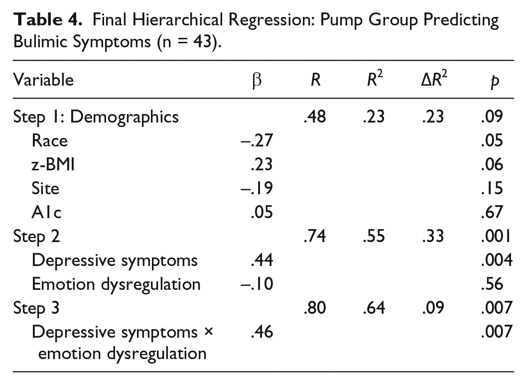 Final Hierarchical Regression: Pump Group Predicting Bulimic Symptoms (n = 43).