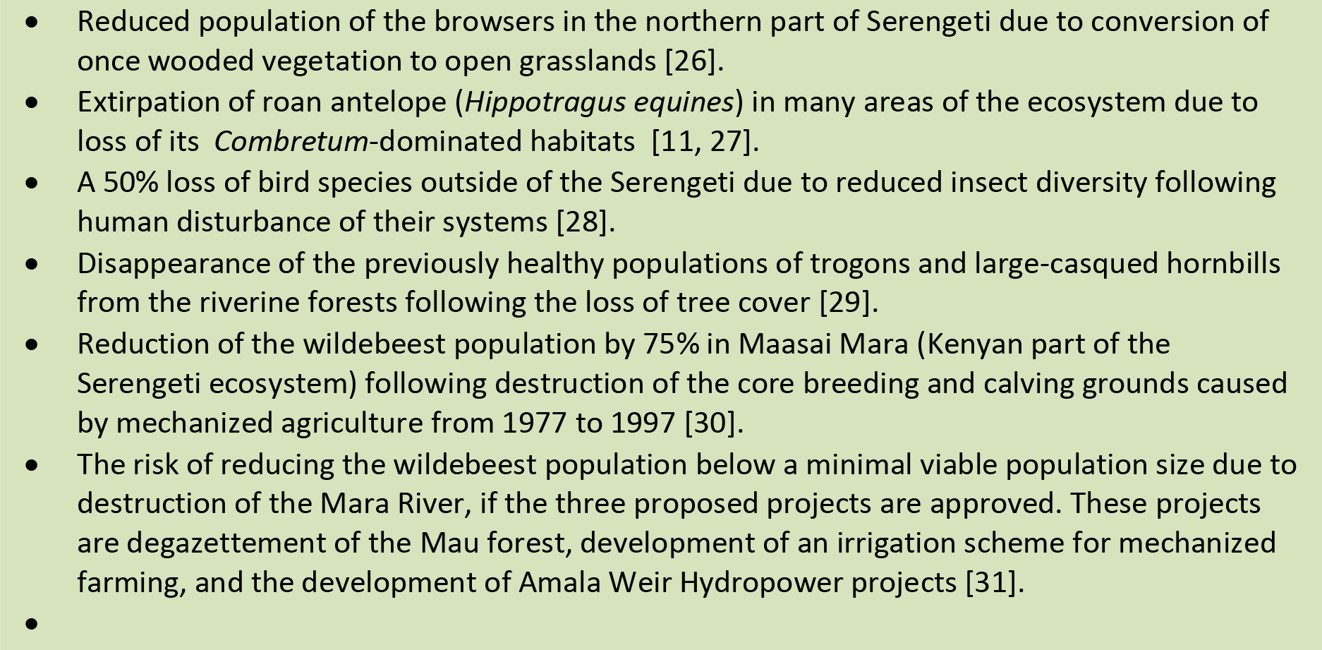 Some examples of ecological impacts of habitat destruction in the western Serengeti