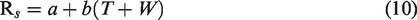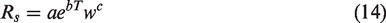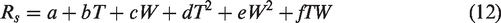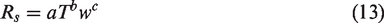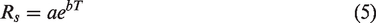Equations (10) to (14) were used to study how the two factors of soil temperature and moisture together control soil respiration. Their functions are as follows: