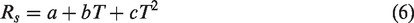 The linear and quadratic models of the relationship between soil respiration and soil temperature are empirical and lack theoretical basis. The responses of soil respiration and mineralization processes to soil temperature are commonly described using exponential and Arrhenius equations. Both equations describe an exponential increase in respiration with increasing temperature, but with a different theoretical basis (Ellert & Bettany, 1992). An exponential increase in soil respiration with respect to temperature is commonly accepted (O’Connell, 1990; Thierron & Laudelout, 1996; Winkler et al., 1996). However, an exponential model could express the relationship between soil respiration and temperature under laboratory conditions, but not in field campaigns. At a high temperature, the sensitivity of soil respiration to temperature might be reduced in a field campaign. Enzymes might be deactivated or destroyed by a further high temperature.