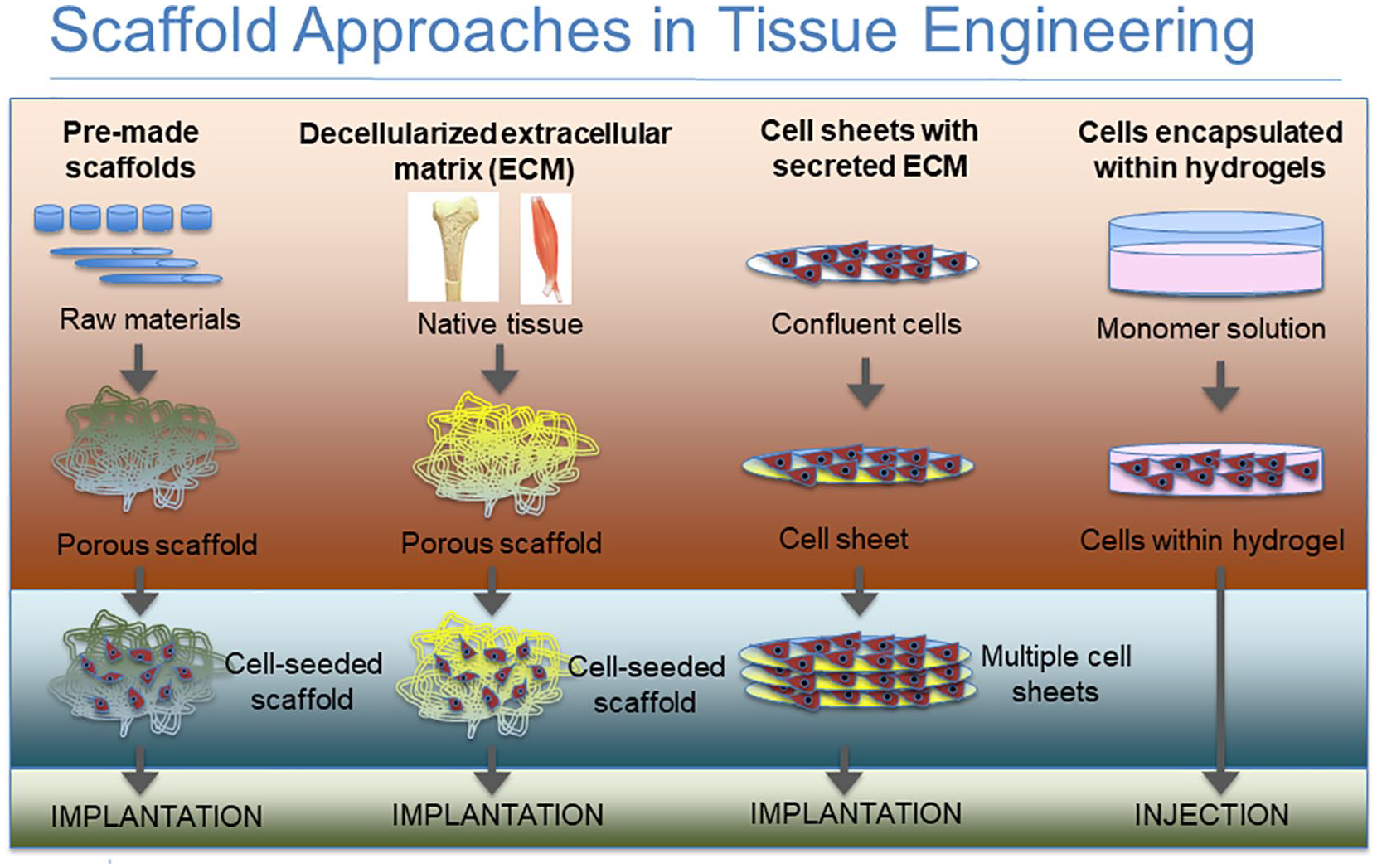 Diagrammatic representation of the different scaffold approaches used in tissue engineering.