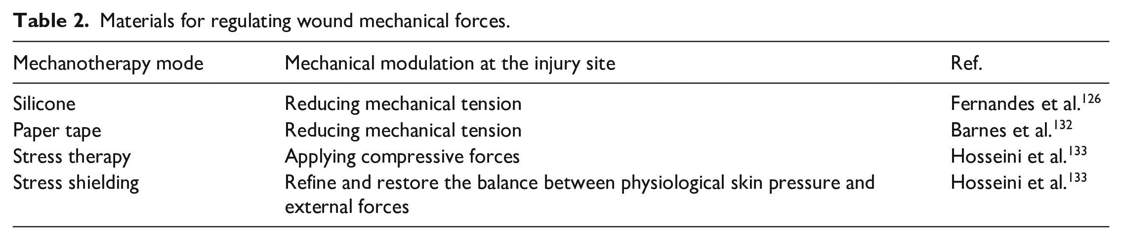 Materials for regulating wound mechanical forces.