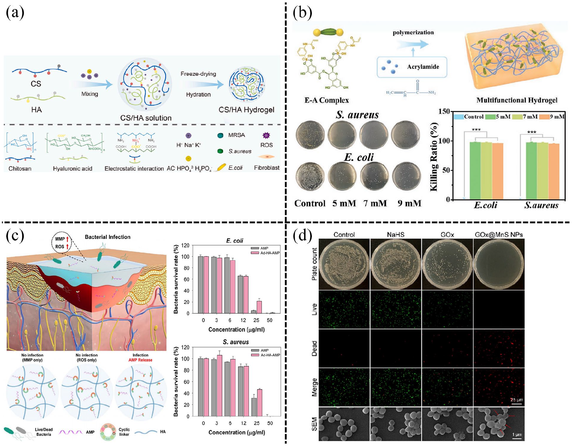 The antibacterial hydrogels in diabetic wounds: (a) the CS/HA hybrid hydrogels. Reproduced with permission.