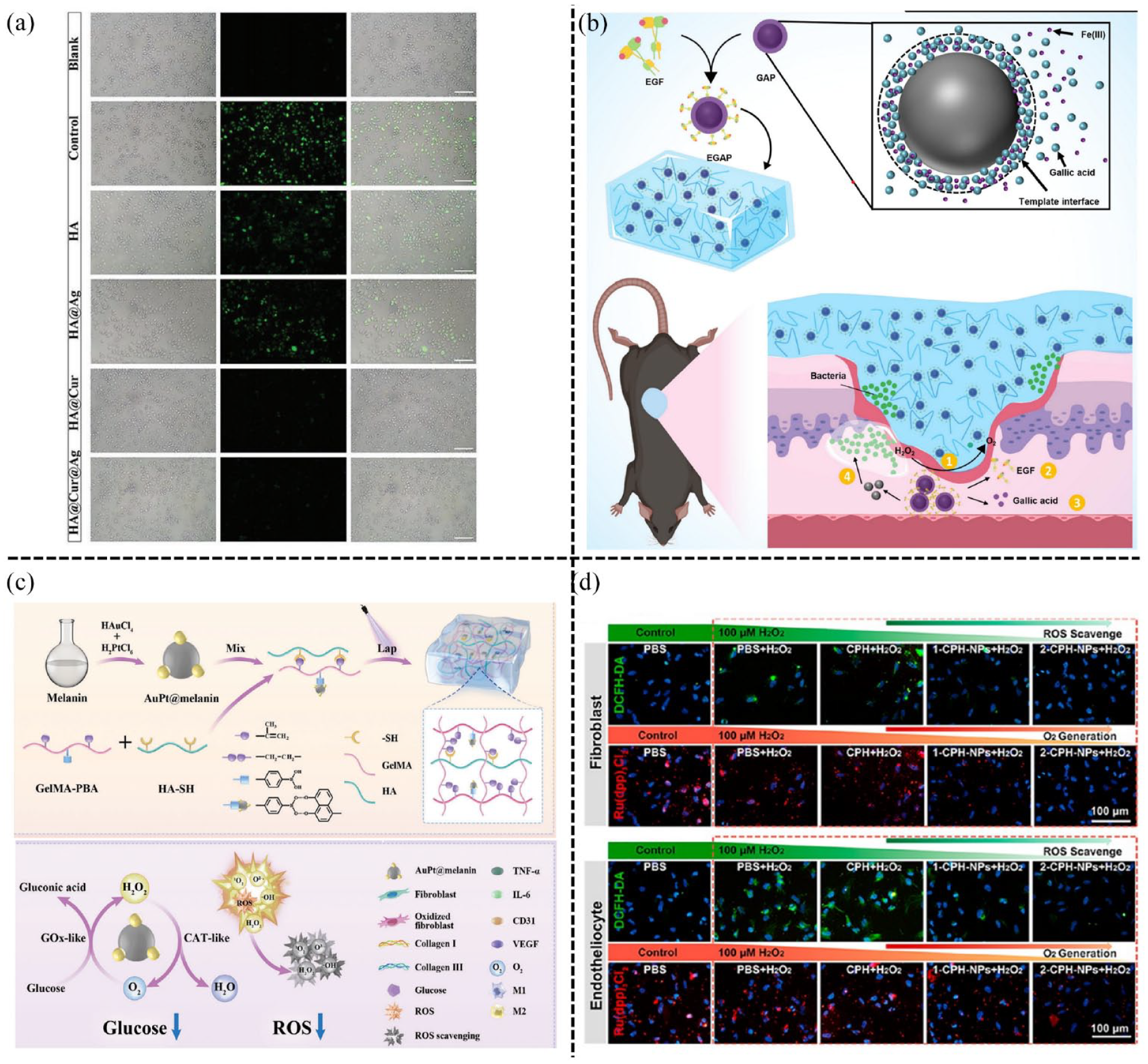 ROS-scavenging hydrogels in diabetic wounds: (a