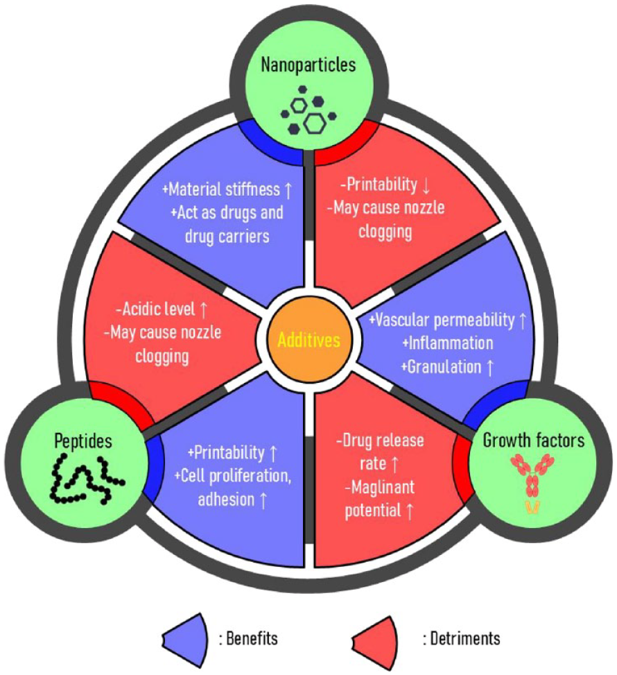 Benefits and detriments of additives in bioinks for 3D bioprinting.