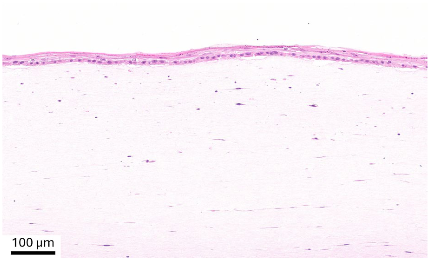 Histological analysis (H&E staining) of the construct denovoSkin™ prior to transplantation.