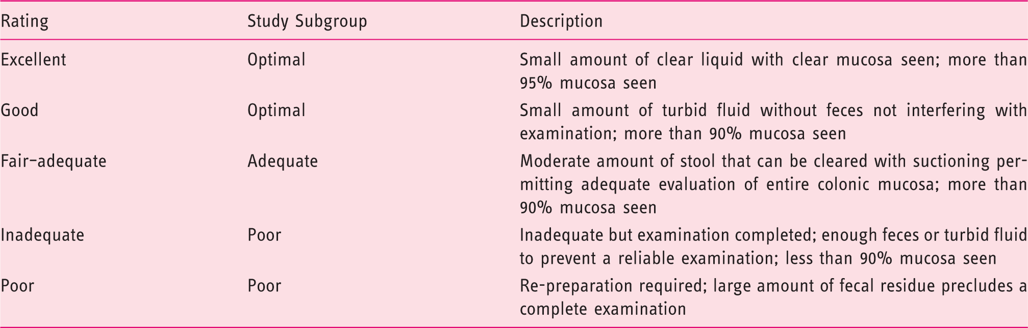 In our study, we also assessed the correlation among the proposed new parameters and the modified Aronchick scale. For this purpose, the study group was divided into three subgroups, according to the quality of BP, namely optimal (Aronchick 1–2), adequate (Aronchick 3), and poor preparation (Aronchick 4–5).