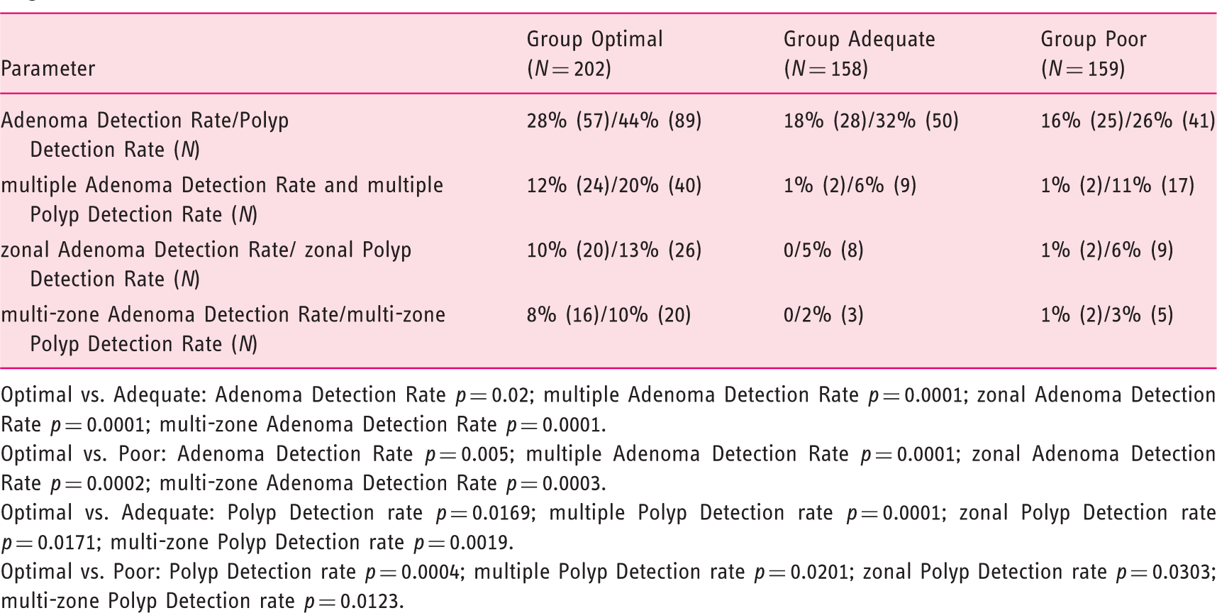 An optimal level of bowel preparation was strongly associated not only with a higher adenoma detection rate, but also with a higher chance of detecting multiple clinically relevant lesions in adjacent or discrete segments of the colon.
