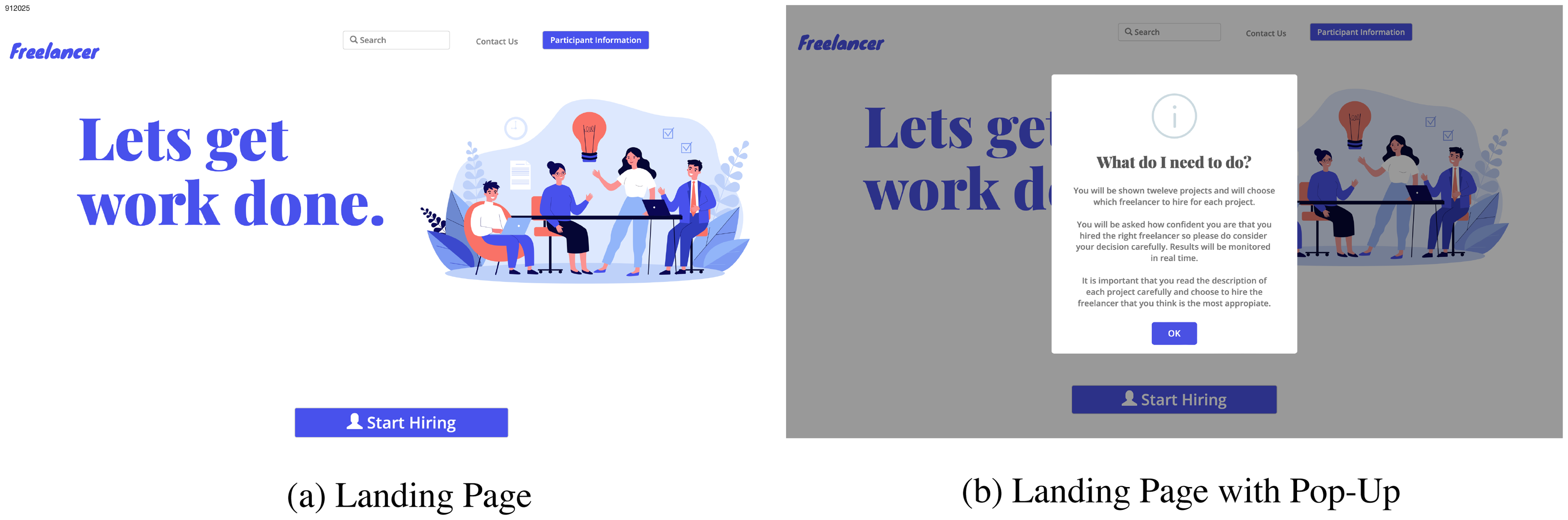 Example structure of the mock freelancing platform choice page.
