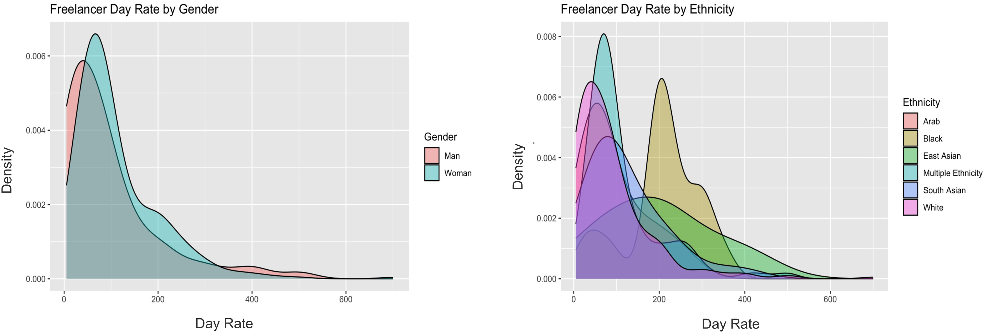 Freelancer day rate by gender and ethnicity from survey.