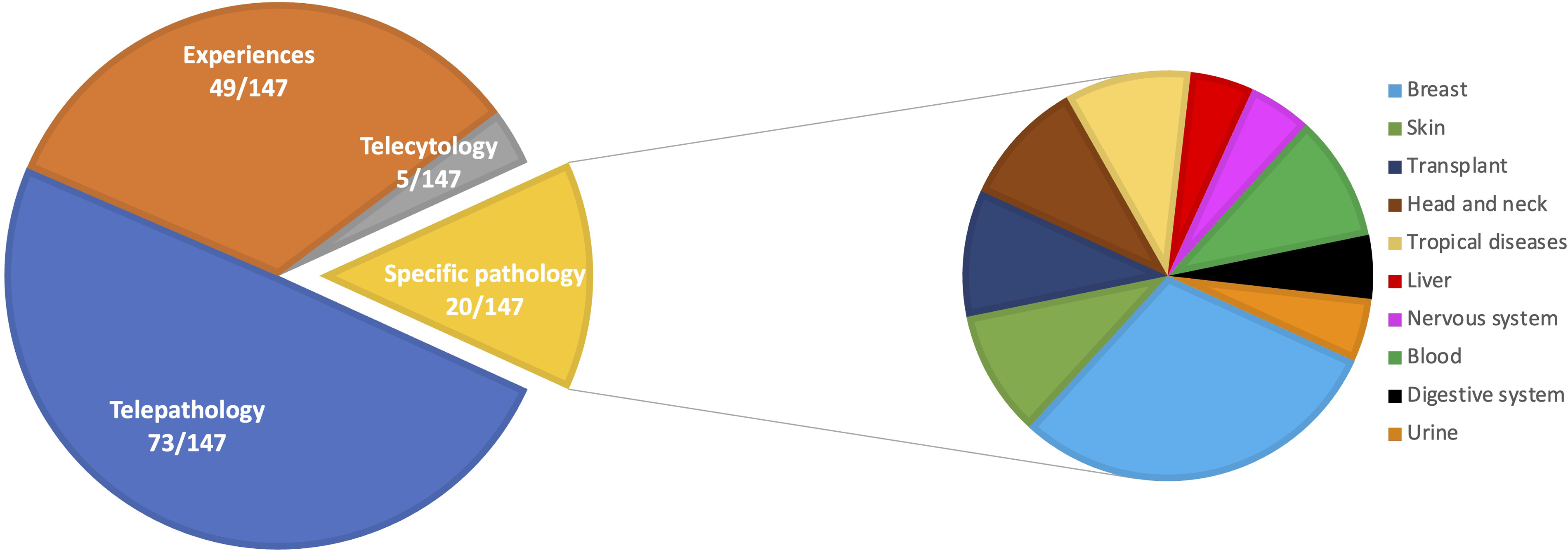Among the 147 studies of the diagnostic category, most were categorized as telepathology (