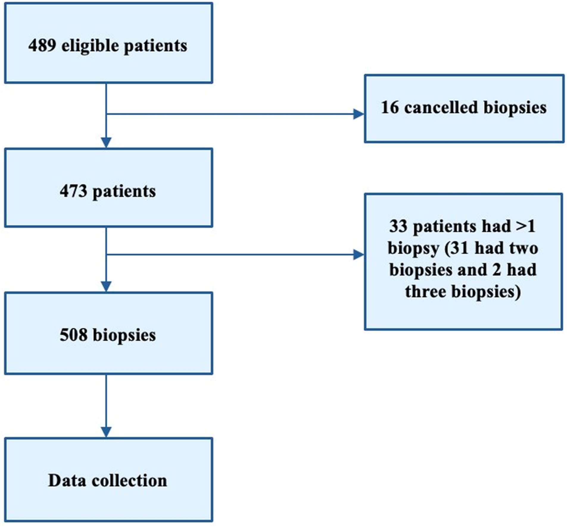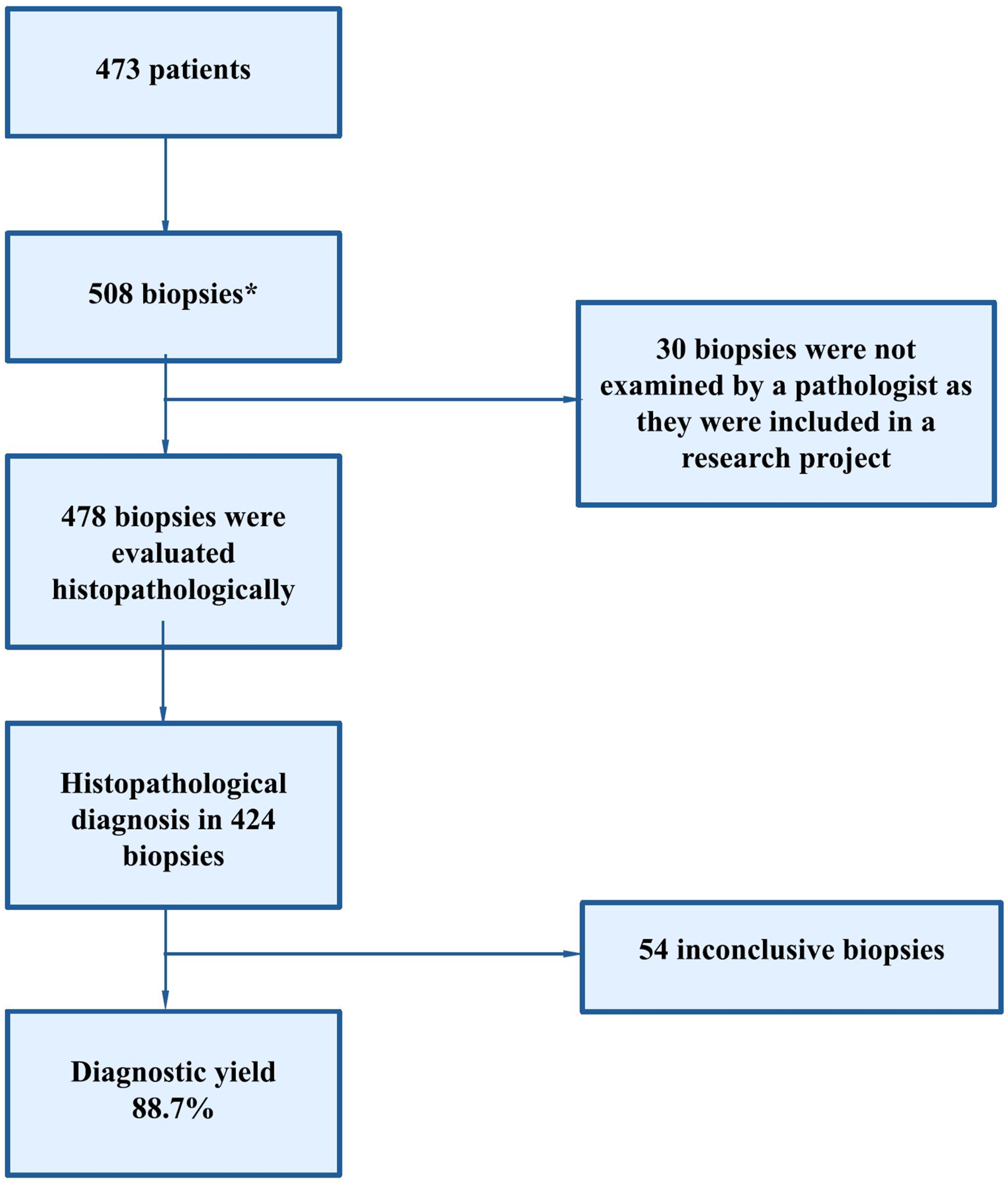 Biopsies were deemed inconclusive if they lacked sufficient material for a histopathological diagnosis.