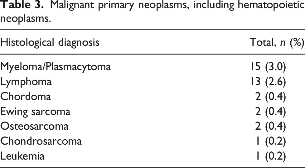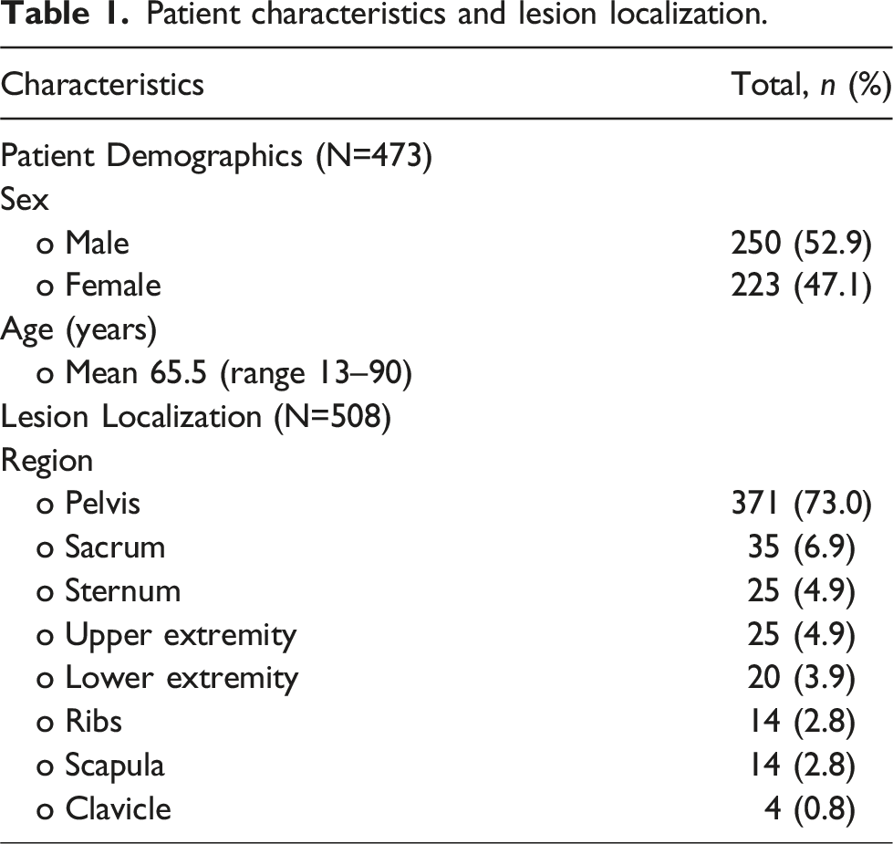 The prevalence of metastatic tumors relative to other types can be influenced by factors such as geographic differences in disease incidence, demographic variations, clinical symptom assessments, biopsy criteria, candidate selection, and biopsy method (core needle vs surgical). However, our study lacks specific data on these underreported factors, which potentially affect histopathological analysis. The criteria for bone biopsies are not universally standardized; instead, they depend on case-by-case evaluations or multidisciplinary team discussions, resulting in a diverse array of tumor types being sampled.