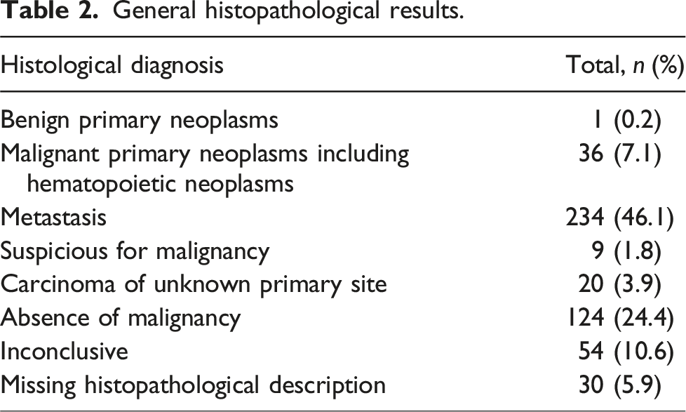 Data on diagnostic yield, tumor type, and complications following the biopsies were retrospectively reviewed and collected from the patients’ electronic health and histopathology records. While there were no formal exclusion criteria, some cases were omitted because the procedure was canceled due to the patient’s decline in health, death, or missing the appointment before the biopsy.