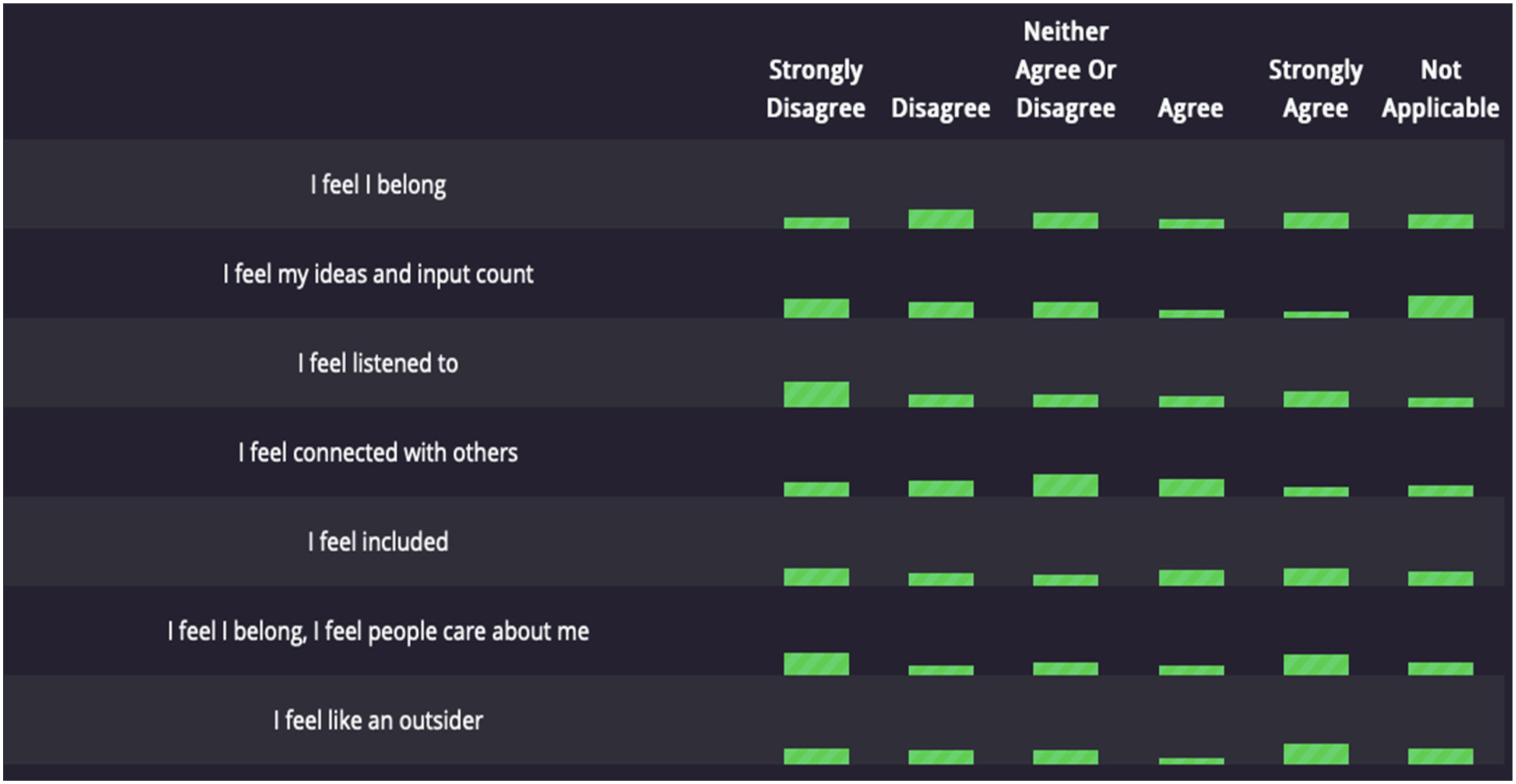 The survey feature allows organisations to develop bespoke questionnaires to capture feedback from the members. This feature has been designed to encourage organisations to actively seek the views and experiences of the people they support to facilitate more collaborative and person-centred ways of working Example survey with built-in analytics.