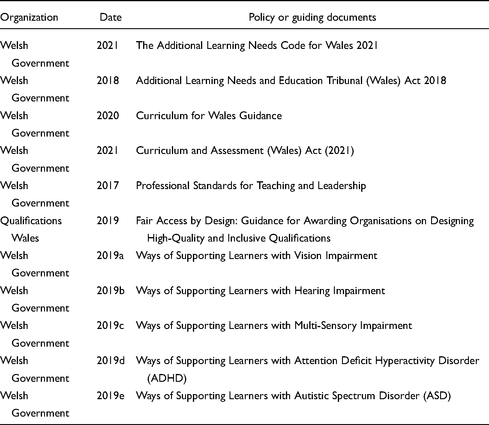 Hardy and Woodcock (2015) conduct critical policy analysis across 28 international, national, and subnational inclusive education policies. While more inclusive policy settings advocate for valuing diversity, less inclusive settings have a larger focus on mainstreaming and hold a deficit approach to students and their learning. They conclude that “there is relatively little consistency about how issues of inclusion are understood and portrayed in policy within and across many national settings” (p. 158). A detailed critique of the specific Welsh policy texts and how inclusion is discursively constructed across these documents is critical for making sense of whether there is consistency in how values and practices of inclusion are interpreted and understood.