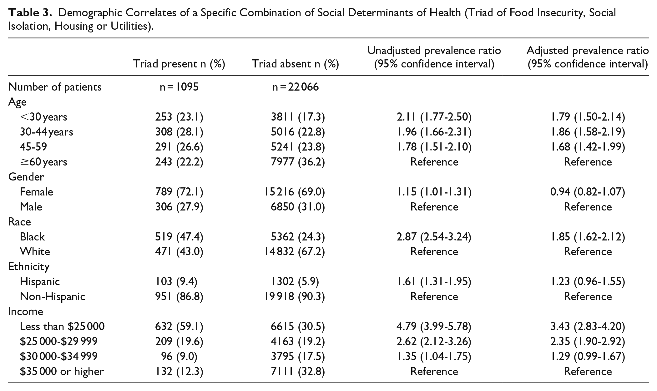Demographic Correlates of a Specific Combination of Social Determinants of Health (Triad of Food Insecurity, Social Isolation, Housing or Utilities).