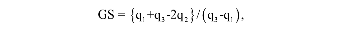 where q1 refers to the lower quartile, q2 is the median, and q3 is the upper quartile. The Pearson 2 skewness coefficient is as follows: