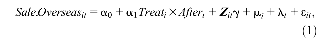Third, the difference-in-differences-in-differences (DDD) design or triple DID model is used to investigate the impact of policy intervention on the TFP of international enterprises. Hence, the empirical model of the DDD is as follows: