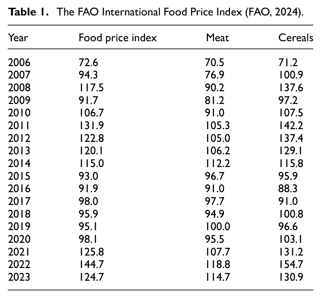 The FAO International Food Price Index (FAO, 2024).
