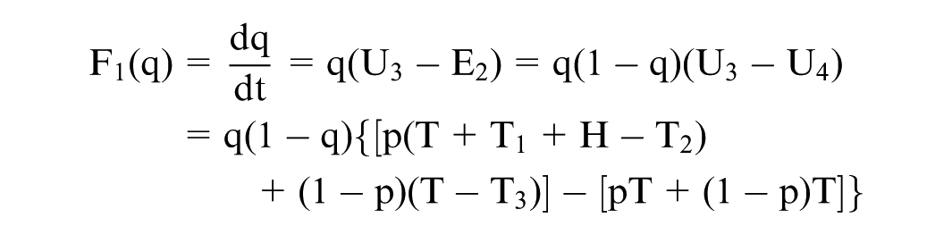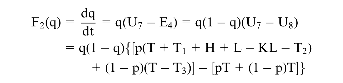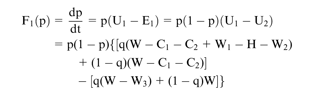 According to the Malthusian dynamic equation, the replication dynamic equation can be derived from the expected return function. For instance, the dynamic replication equation for when hospital administrators choose to build a gym is as follows: