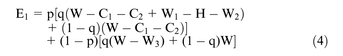 The following formula is used to analyze the factors that affect the tendency of the game system’s stable equilibrium strategy when the government does not implement incentive measures.