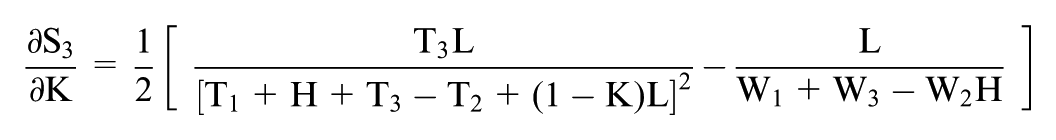To find the partial derivative of S3 with respect to K, we obtain the following: