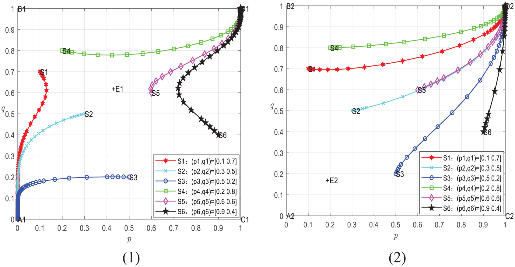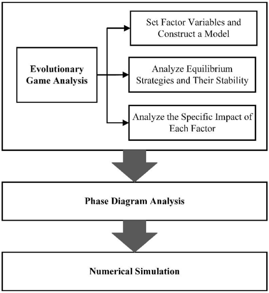 Secondly, this study uses phase diagram analysis, which visually displays and describes in detail the equilibrium strategies and stable points derived from evolutionary games within the phase diagrams.