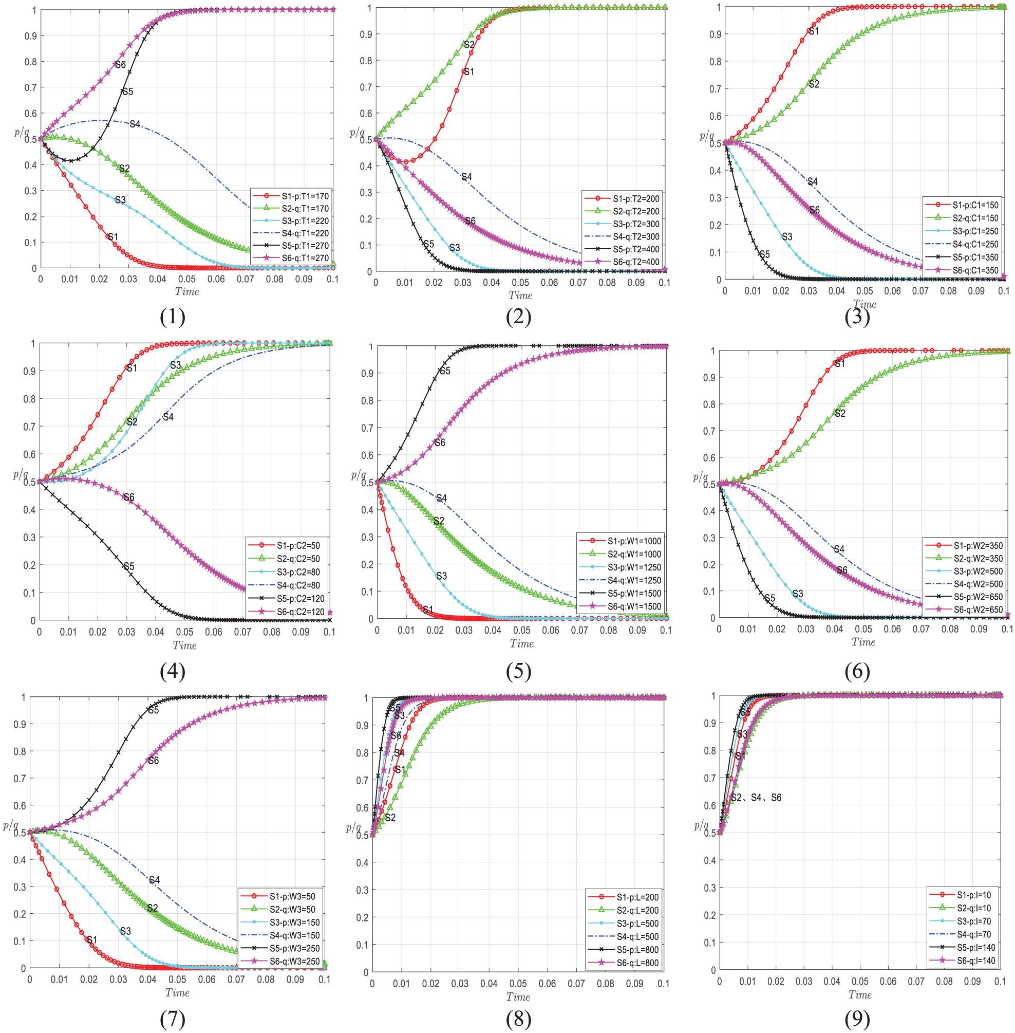 It can be seen that S1 is non-monotonic with respect to T3, and the influence of T3 on the tendency of the stable equilibrium strategy cannot be determined.
