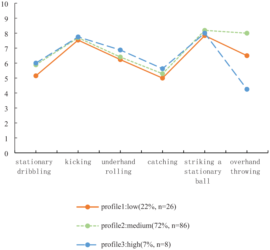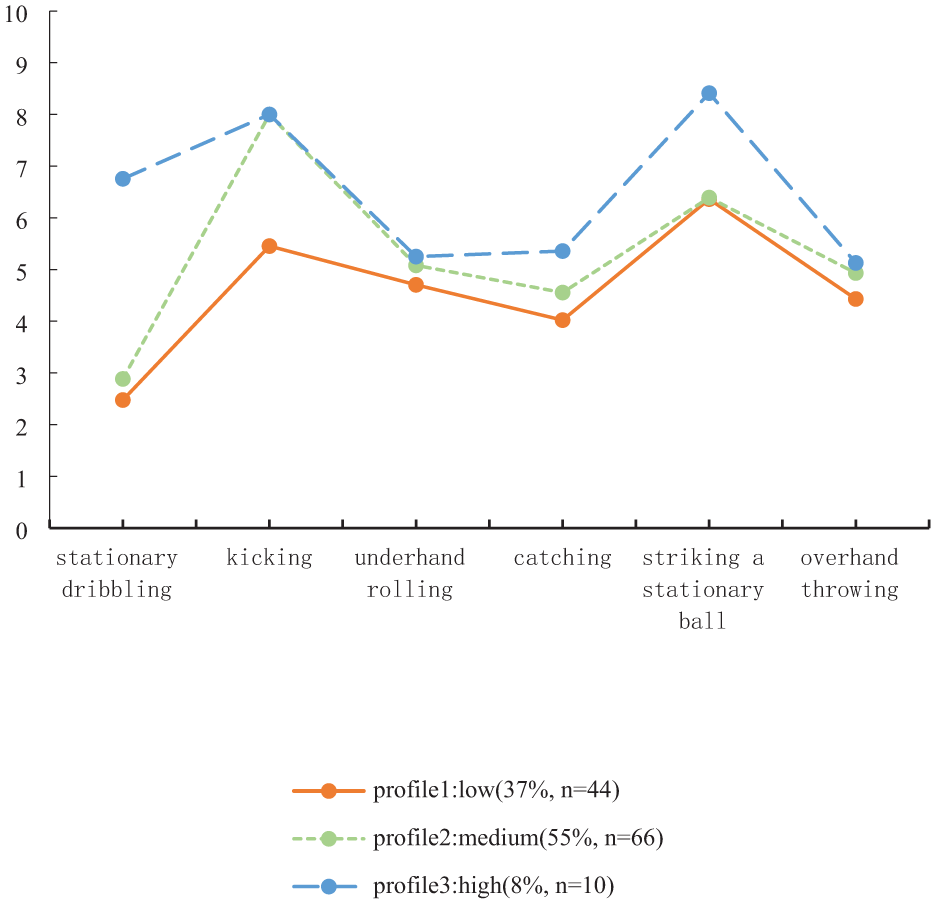 To investigate the profiles of children’s object control, latent profile analysis (LPA) was conducted using scores from six object control movements as indicators.