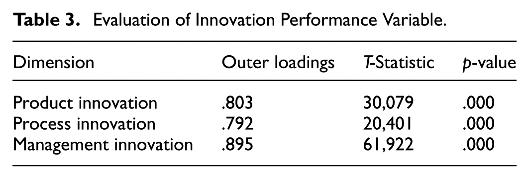 Evaluation of Innovation Performance Variable.