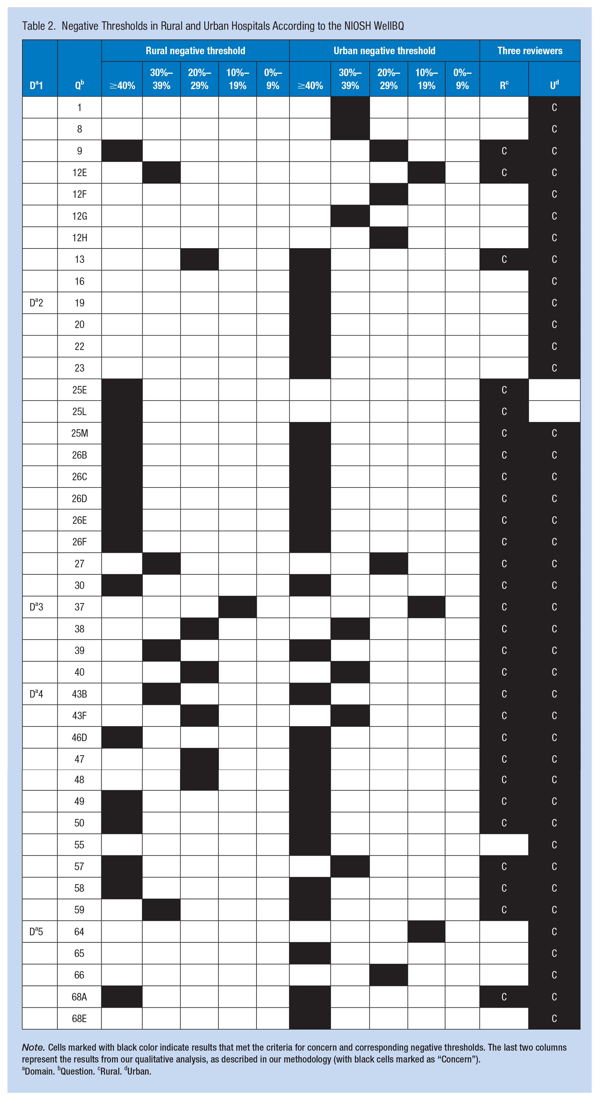 Negative Thresholds in Rural and Urban Hospitals According to the NIOSH WellBQ
